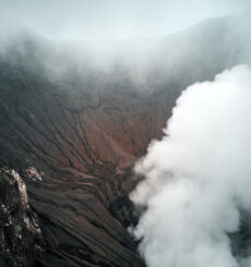 Discover a steaming volcanic crater amid misty mountain surroundings, where nature’s raw power and beauty collide in stunning fashion.